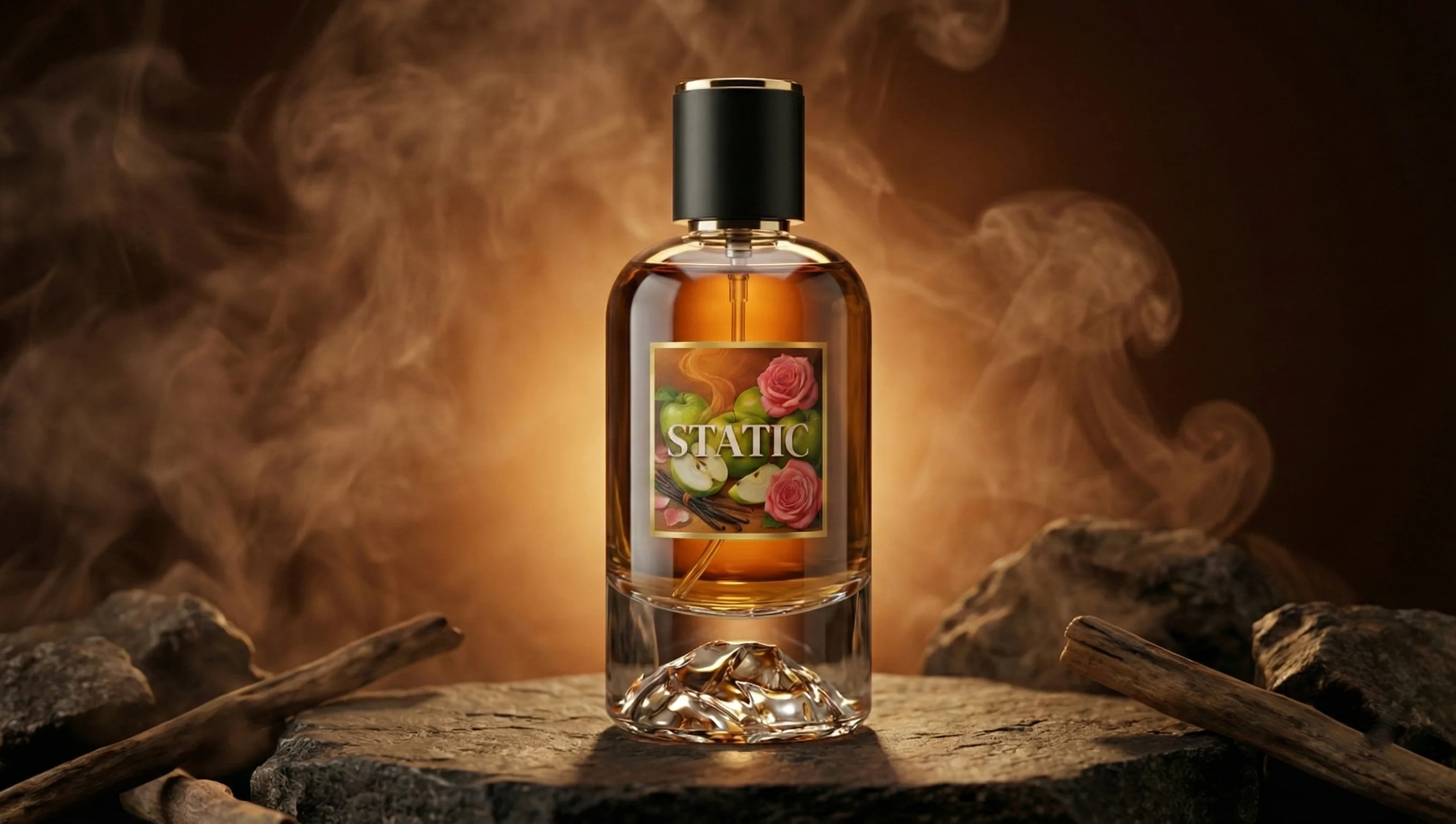 100ml. Void Packaging = STATIC is a spark on skin: citrus brightness and crackling spices over warm chestnut, vanilla, and amber, it makes you addictive . It opens with a fizzy, lifted top, then settles into a sweet, smoky, nutty warmth that feels like electricity wrapped in comfort